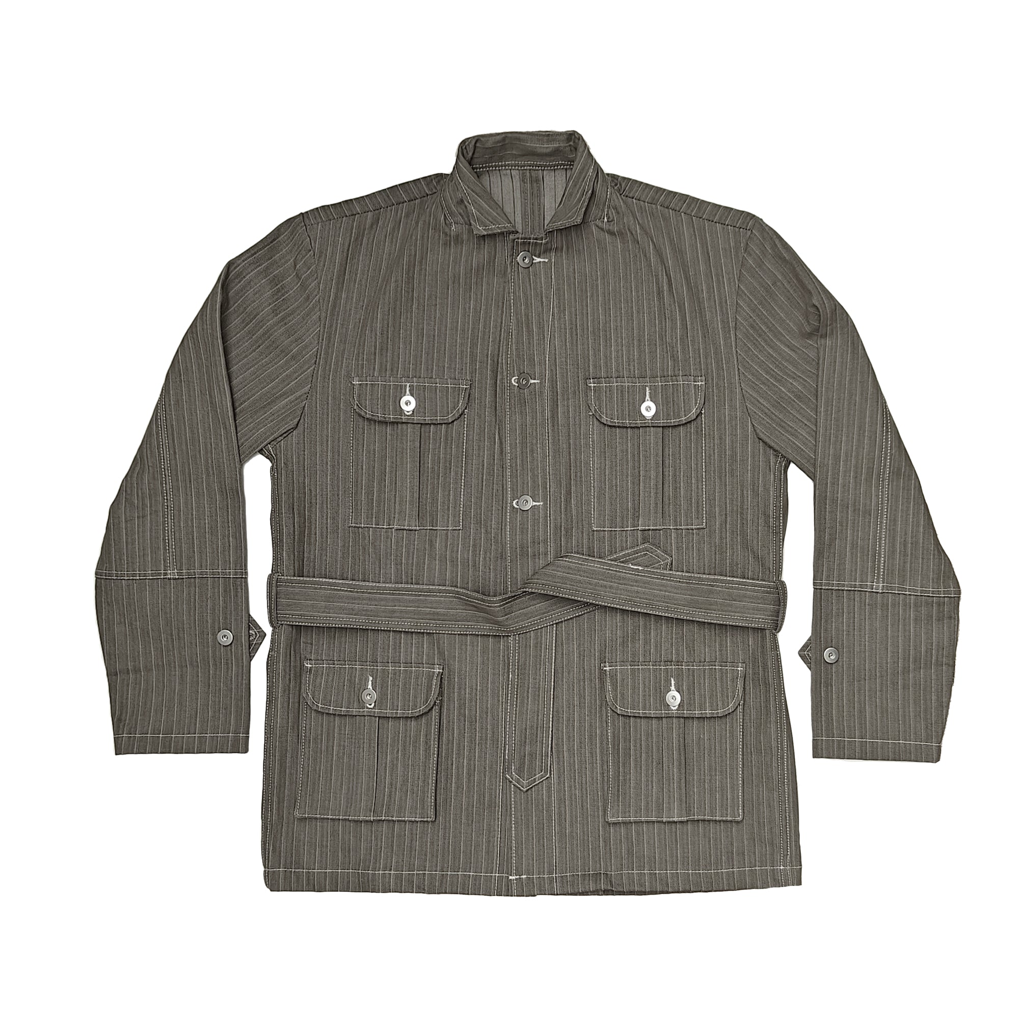 BROWN STRIPE HERRINGBONE SAFARI JACKET